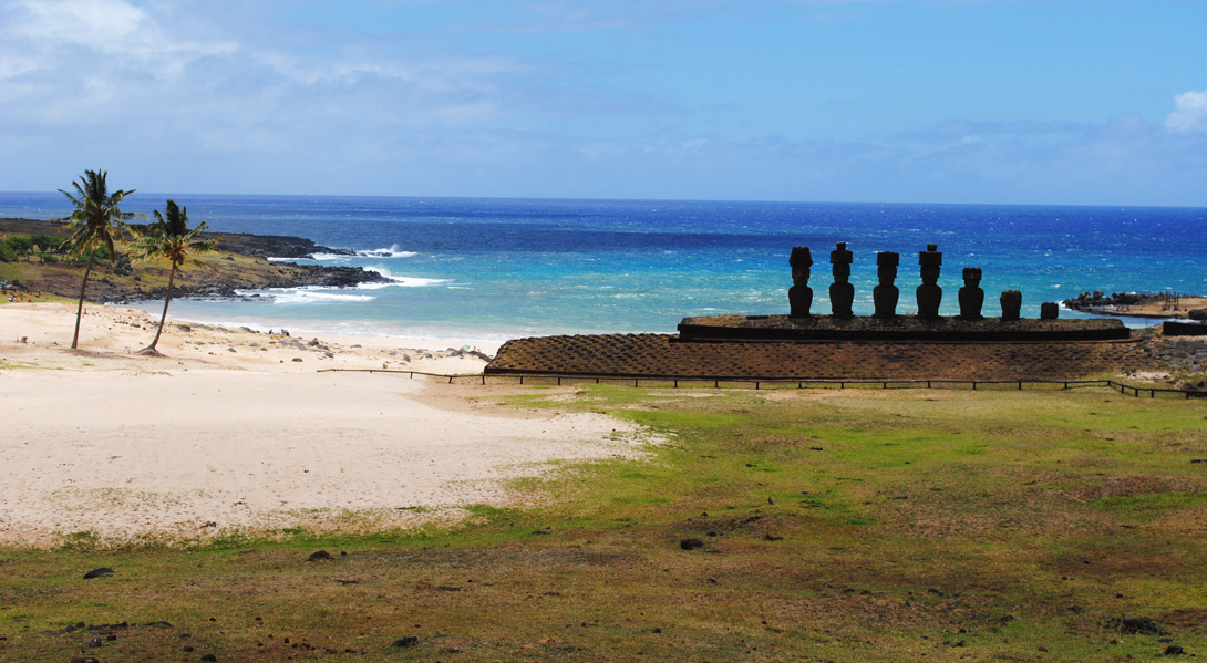 No se puede estar en Rapa Nui y no visitar Anakena, la playa donde tocaron tierra las primeras embarcaciones de la migración polinésica para colonizar la isla y donde se asentaron los primeros habitantes.