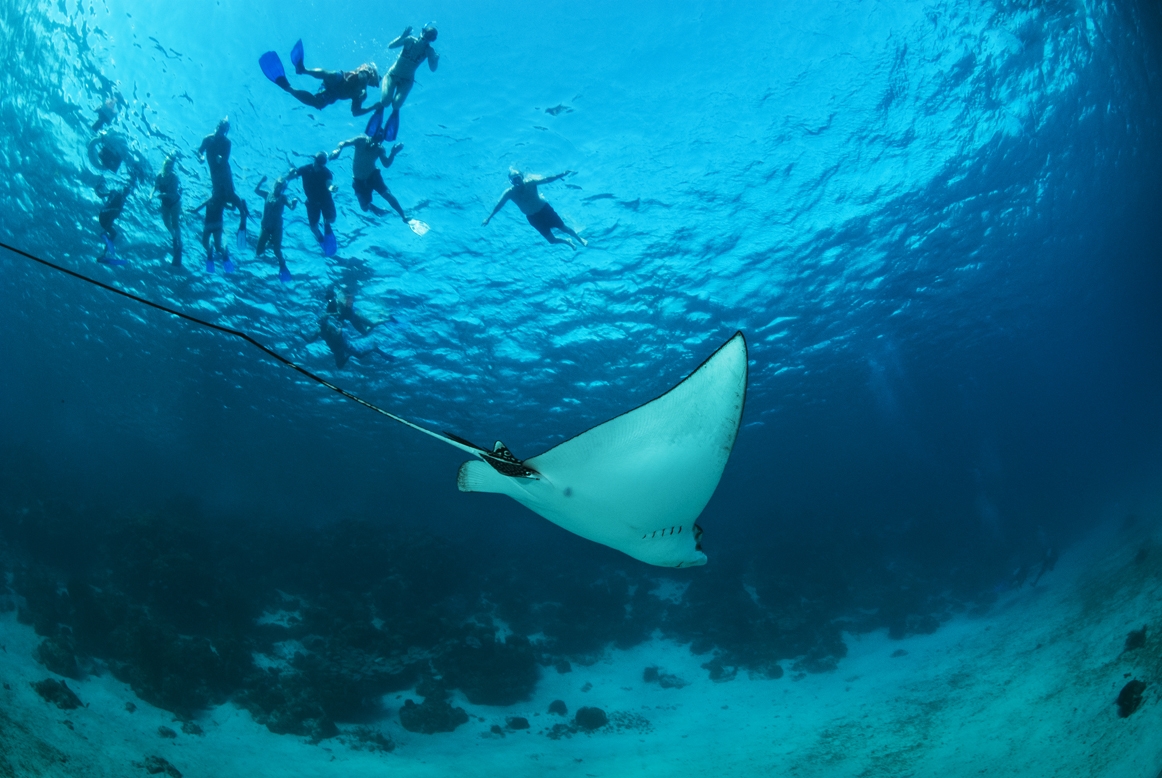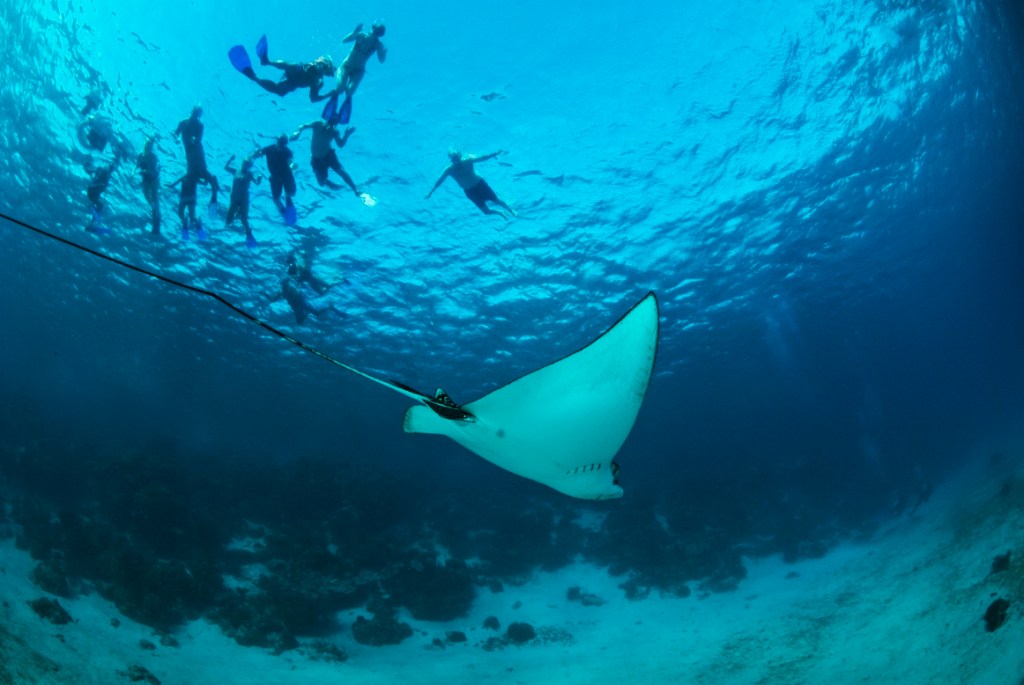 La siguiente parada del paseo, no es ni más ni menos que para nadar entre tiburones y rayas. Pero no temas porque son muy dóciles y nadadores de todos los niveles pueden animarse a vivir esta experiencia irrepetible.