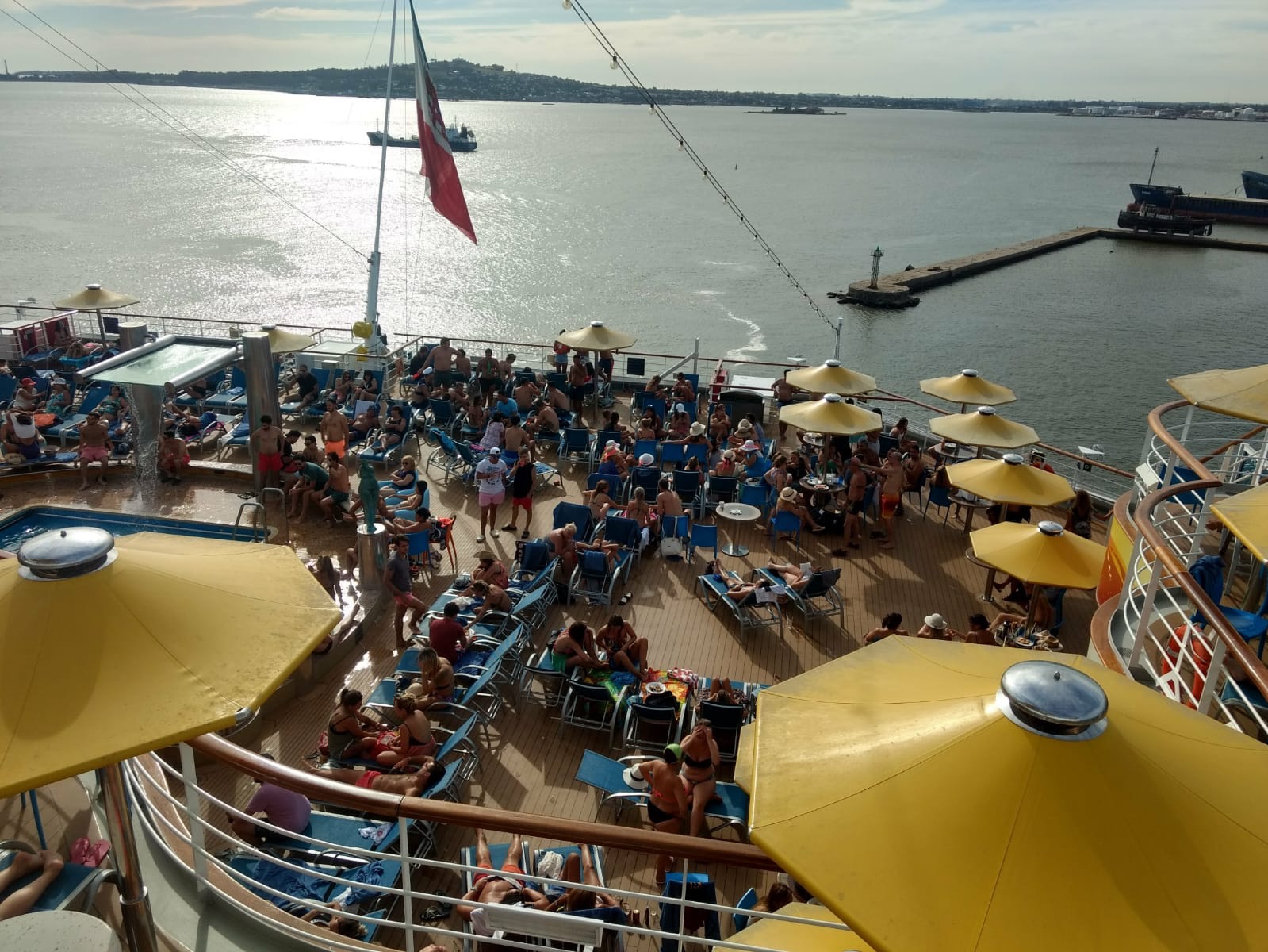 Nuestra travesía fue corta, pero intensa. Salimos del Puerto de Montevideo y todos nos reunimos en la piscina que se encontraba en la popa del buque. Conforme nos alejábamos, la fiesta comenzó y la música invitaba a todos los cruceristas a bailar en un ambiente muy divertido celebrando la puesta de sol y las maravillosas vistas de la ciudad.